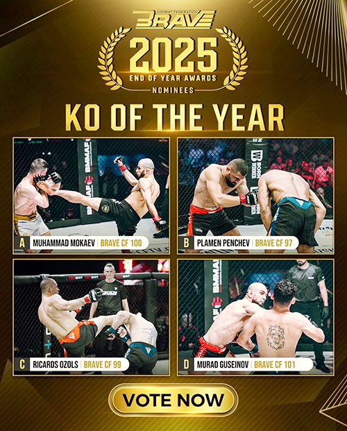 واختتمت المنظمة إعلانها بدعوة الجماهير حول العالم الى المشاركة في اختيار الفائز بجائزة أفضل ضربة قاضية لعام 2025، عبر التصويت من خلال القنوات الرسمية لـBRAVE CF على مواقع التواصل الاجتماعي، لتكريم أكثر اللحظات إثارة في عالم الفنون القتالية المختلطة.