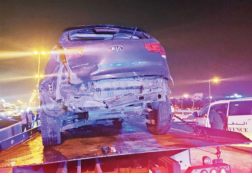 أُصيبت فتاة خليجية بإصابات متفرقة إثر تعرضها لحادث مروري وقع في ساعة متأخرة من مساء الأربعاء على شارع الشيخ عيسى بن سلمان، بعدما دخلت مركبتها في المسار المعاكس واصطدمت بثلاث مركبات أخرى تسير في الاتجاه المقابل.