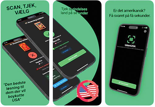 وتصدّر تطبيقان للهواتف المحمولة قائمة التطبيقات الأكثر استخداماً في متجر التطبيقات الدنماركي، إذ يتيحان للمستخدمين معرفة ما إذا كانت المنتجات أمريكية الصنع عبر مسح الرموز الشريطية، ثم يقترحان بدائل دنماركية أو أوروبية محلية، في خطوة تهدف إلى دعم المنتجات الوطنية وتقليل الاعتماد على العلامات الأمريكية.