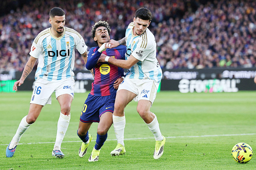 مدريد – (أ ف ب): سجل النجم الشاب لامين جمال مقصية رائعة من ثلاثية فريقه برشلونة أمام ضيفه ريال أوفييدو وقاده لاستعادة الصدارة من غريمه ريال مدريد الذي اعتلاها لقرابة 24 ساعة، في المرحلة الحادية والعشرين من الدوري الإسباني لكرة القدم.