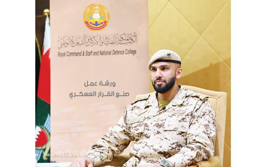 وقد تناول المقدم الركن الشيخ عبدالله بن خليفة بن أحمد آل خليفة محاور الورشة بمدخل عن عملية صنع القرار التي كانت حول العقيدة القتالية وتأثيرها على صنع القرار العسكري، وبعدها انتقل إلى المحور التالي حول خطوات صنع القرار العسكري، من تسلم المهمة حتى إصدار الأوامر.