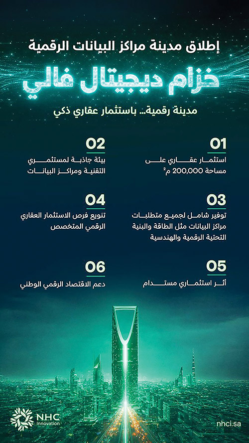 وتعد المدينة أحد المحاور الرئيسة في استراتيجية الشركة الوطنية للإسكان «NHC» في الاستثمار بالبنية التحتية الرقمية وصناعة التطوير العقاري المتقدم المعتمد على التقنية. وتم إطلاق المشروع رسميًا في السعودية مؤخرًا خلال منتدى مستقبل العقار.