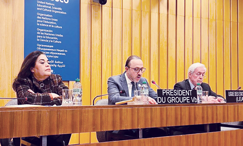 وأشار إلى أن رئاسة مملكة البحرين للمجموعة العربية تتزامن مع بدء عضويتها غير الدائمة في مجلس الأمن الدولي للفترة (2026-2027)، ما يشكّل فرصة لتعزيز التكامل بين العمل السياسي في نيويورك والعمل الثقافي والتربوي في باريس، انطلاقاً من إيمان المملكة بدور التعليم والثقافة في ترسيخ قيم التسامح والتعايش ودعم الاستقرار والتنمية المستدامة.