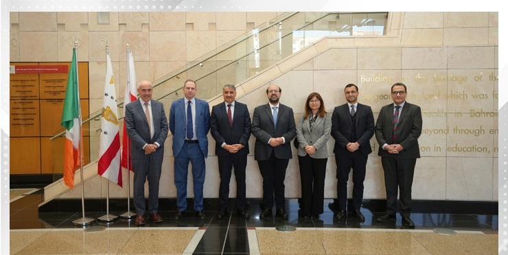 استقبلت الكلية الملكية للجراحين في أيرلندا (RCSI) – جامعة البحرين الطبية وفدًا من الجمهورية الإيطالية، برئاسة سعادة السيد أندريا كاتالانو، سفير الجمهورية الإيطالية لدى مملكة البحرين، يرافقه البروفيسور مانفريدي ريتزو مفوض رئيس الجامعة للتعاون الدولي وأستاذ الغدد الصماء في جامعة باليرمو، ورئيس الجمعية الأوروبية الوسطى للسكري (CEDA) للفترة 2026ـ 2030 وذلك في إطار تعزيز التعاون الأكاديمي وتوسيع آفاق الشراكات الدولية.
