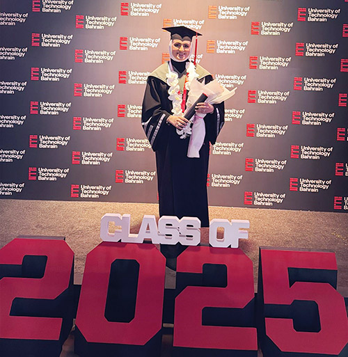 احتفلت الطالبة أميرة جاسم بتخرجها في جامعة البحرين للتكنولوجيا «ماجستير في أدارة الأعمال»، محققةً تقدير امتياز مع مرتبة الشرف الأولى، في إنجاز أكاديمي يعكس تفوقها واجتهادها طوال مسيرتها الدراسية.