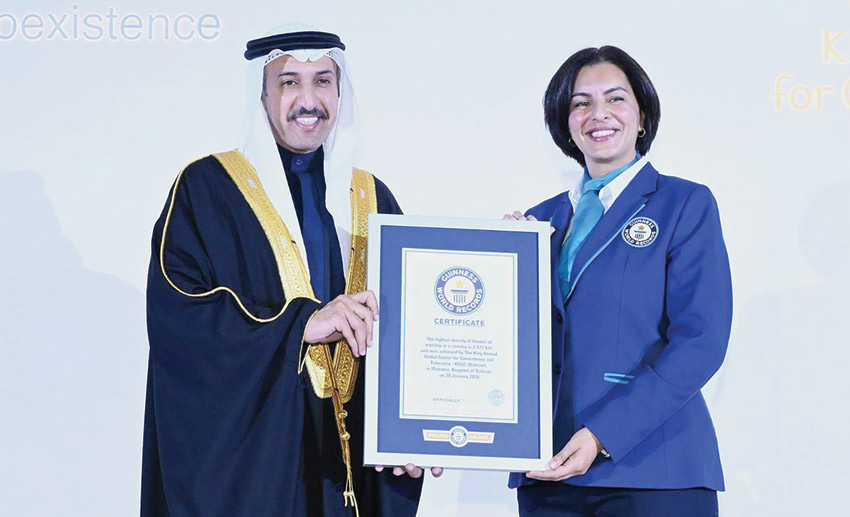 وكشف عن تحقيق مملكة البحرين إنجازًا عالميًا جديدًا، بتسجيلها رسميًا في موسوعة غينيس للأرقام القياسية كأعلى دول العالم في كثافة دور العبادة لمختلف الأديان قياسًا إلى المساحة، بمعدل 2.577 دار عبادة لكل كيلومتر مربع، بما يجسد واقع التسامح والتعايش الديني الذي تتميز به المملكة كمثالٍ فريد في احترام الحريات الدينية ورعاية الشعائر والمناسبات الروحية لمختلف الأديان والمذاهب والمعتقدات، في إطار من الوحدة الوطنية والتلاحم المجتمعي.