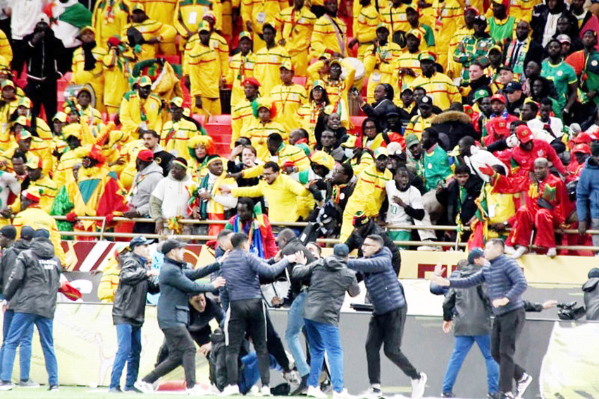 وامتدّت التوتّرات إلى المدّرجات حيث حاول عدد من مشجعي السنغال اقتحام أرضية الملعب مدة قاربت 15 دقيقة، حتى خلال استعداد إبراهيم دياس لتسديد ركلة الجزاء التي أهدرها في النهاية.