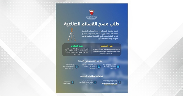 وبموجب هذه الخدمة المطورة، أصبحت الخدمة تُقدَّم عبر القنوات الإلكترونية بشكل كامل، حيث يتم مشاركة المكتب الهندسي المعني بأعمال المساحة بإحداثيات القسيمة الصناعية عبر النظام الإلكتروني بشكل مباشر، دون الحاجة إلى المراجعة الحضورية، الأمر الذي يسهم في تقليل الوقت والجهد على المستثمرين.