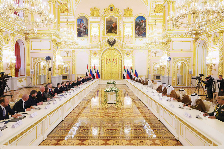 واستعرض رئيس دولة الإمارات ونظيره الروسي خلال الجلسة مسار علاقات التعاون وفرص تطويرها وخاصة في المجالات الاقتصادية والتجارية والاستثمارية والتكنولوجيا والفضاء إضافةً إلى الطاقة وغيرها من الجوانب التي تمثل أولويات تنموية للبلدين وذلك انطلاقا من حرصهما المتبادل على توسيع آفاق شراكتهما الاستراتيجية على مختلف المستويات.