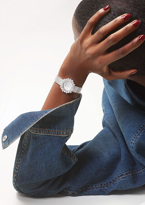 وتعكس هذه الساعة الجديدة التي تنضم إلى مجموعة (L’Heure du Diamant) حرفية الدار الرفيعة من خلال لمسة بارعة خاصة بالدار تتجلى في أسلوب ترصيع الألماس على إطار زجاج الساعة، فقد أعيد تصميمها لتكون أكثر تألقاً وتبدو كنجوم من الألماس بأحجام مختلفة تنتظم بنسق يحيط مينا من عرق اللؤلؤ المتعرج. علماً أن عرق اللؤلؤ يشتهر بلمعانه القزحي وارتباطه الرمزي بالبحر، ويُعتقد أنه يعزز الإبداع ويبدد المشاعر السلبية، بينما تتوافق ألوانه الطبيعية الناعمة مع العقارب التي تتخذ شكل أوراق الشجر وتدور بخفّة فوق المينا.