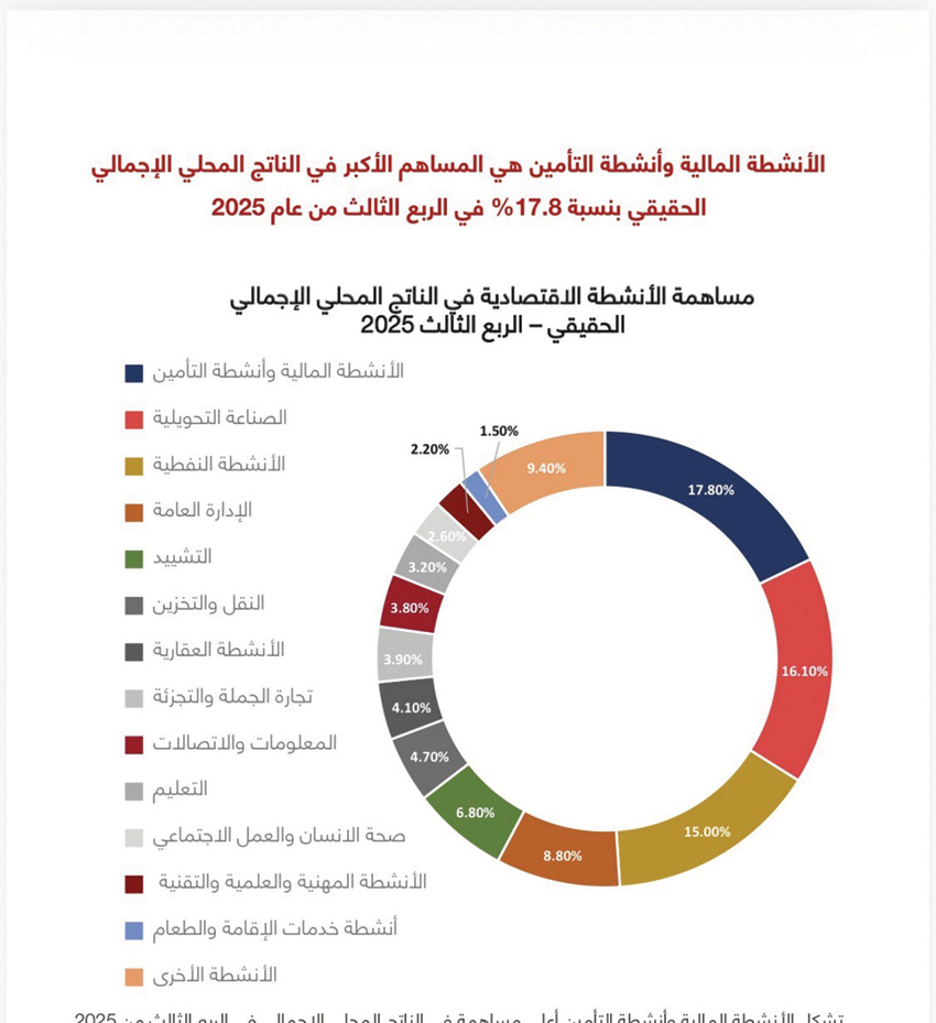 الأنشطة المالية والتأمين أكبر مساهم في الناتج المحلي