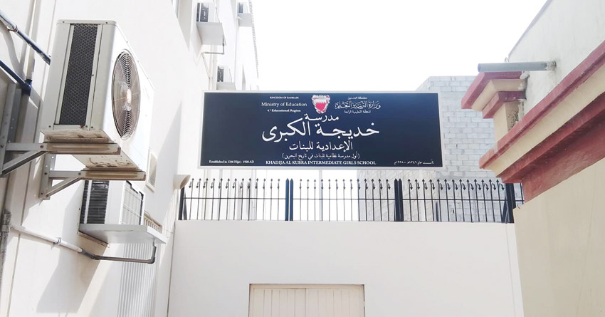 كشف د. محمد بن مبارك جمعة وزير التربية والتعليم أن الوزارة قامت بتصميم وتركيب لوحات تعريفية مطابقة للوحة التاريخية الأصلية لمدرسة خديجة الكبرى الإعدادية للبنات بالمحرق، وهي أول مدرسة نظامية للبنات في مملكة البحرين، إذ أنشئت عام 1928م.