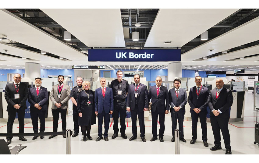 وشملت الزيارة قوة الحدود البريطانية، حيث التقى الوفد بافيليب دوغلاس المدير العام لقوة الحدود البريطانية، وتم خلال اللقاء استعراض آليات العمل المعتمدة في مطار مانشستر الدولي، ولا سيما الإجراءات المتبعة في مناطق المسافرين، واستخدام الأنظمة الرقمية والتقنيات الحديثة، بما في ذلك البوابات الإلكترونية، في تنظيم حركة الدخول والخروج ورفع كفاءة الخدمات المقدمة للمسافرين.