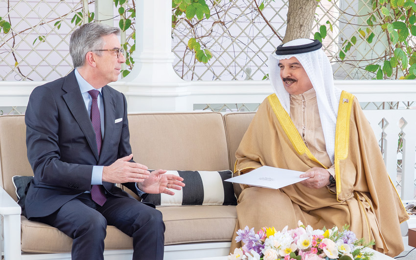 وخلال اللقاء أكد جلالة الملك المعظم عمق علاقات الشراكة المتميزة التي تجمع بين مملكة البحرين والجمهورية الفرنسية، والتطلع الدائم إلى دعمها وتنميتها في كل المجالات التي تخدم المصالح المتبادلة.