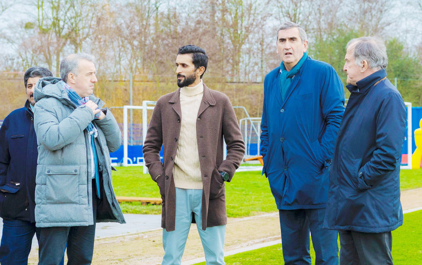 وكان في استقبال سموه، بيير فيراتجي رئيس نادي باريس أف سي الفرنسي، وجان-مارك غالو المدير العام للنادي.
