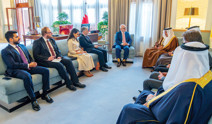 جاء ذلك لدى لقاء سموه أمس في قصر الرفاع، بحضور سمو الشيخ عيسى بن سلمان بن حمد آل خليفة وزير ديوان رئيس مجلس الوزراء، وعدد من كبار المسؤولين، اللورد جيسون ستوكوود وزير الاستثمار بالمملكة المتحدة، حيث استعرض سموه ما تشهده أوجه التعاون الثنائي بين مملكة البحرين والمملكة المتحدة الصديقة من تقدمٍ مستمر في ظل ما يجمعهما من اتفاقياتٍ ومذكرات تفاهم، مؤكدًا سموه أهمية مواصلة فتح آفاقٍ أوسع من التعاون في مختلف المجالات، ولا سيما الاقتصادية والاستثمارية منها، بما يعود بالخير والنماء على البلدين والشعبين الصديقين.