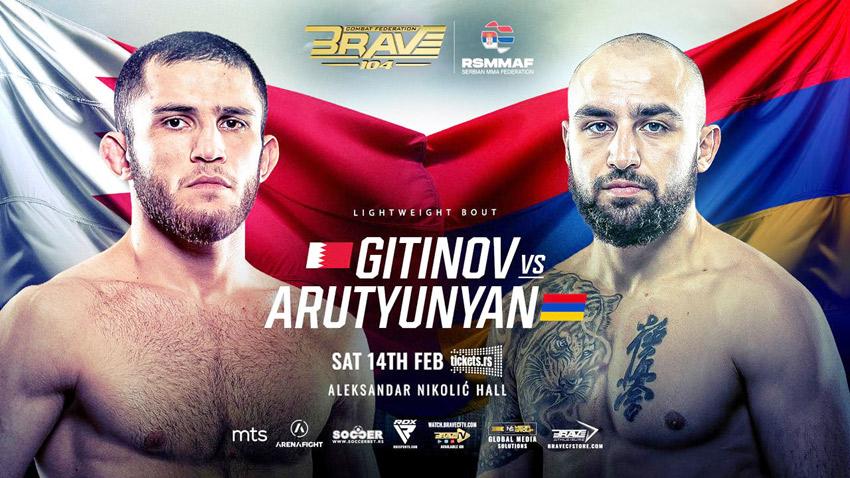 وستقام بطولة BRAVE CF 104 في أجواء حماسية مثيرة، وسط ما تشهده العاصمة بلغراد من احتضان لمنافسات بطولة أوروبا لفنون القتال المختلطة للهواة، والتي ينظمها الاتحاد الدولي لفنون القتال المختلطة IMMAF.