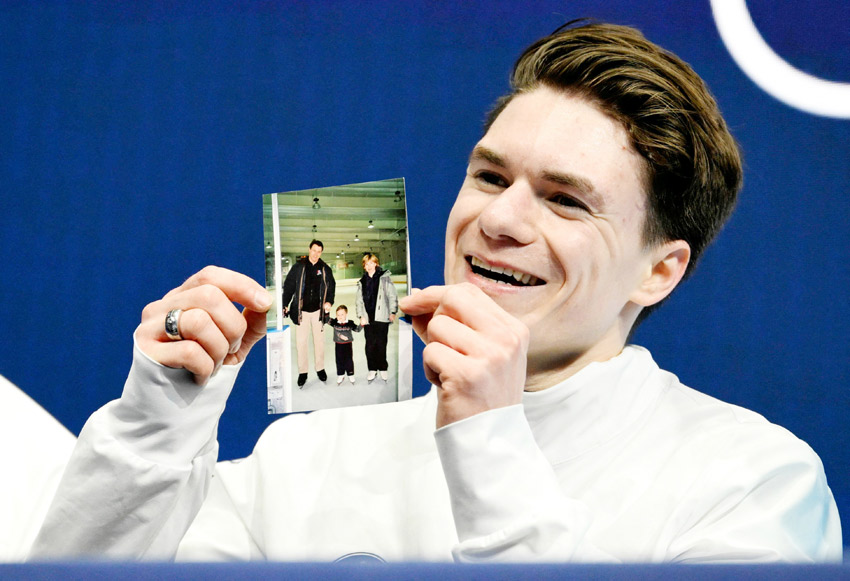 وقال للصحفيين عن والديه «أشعر أنني كنت مُوجَّها بهما اليوم... شعرت بحضورهما. في كل انزلاق وخطوة على الجليد... لم أستطع إلا أن أشعر بدعمهما. كقطعة شطرنج تُنقَل من خانة إلى أخرى».