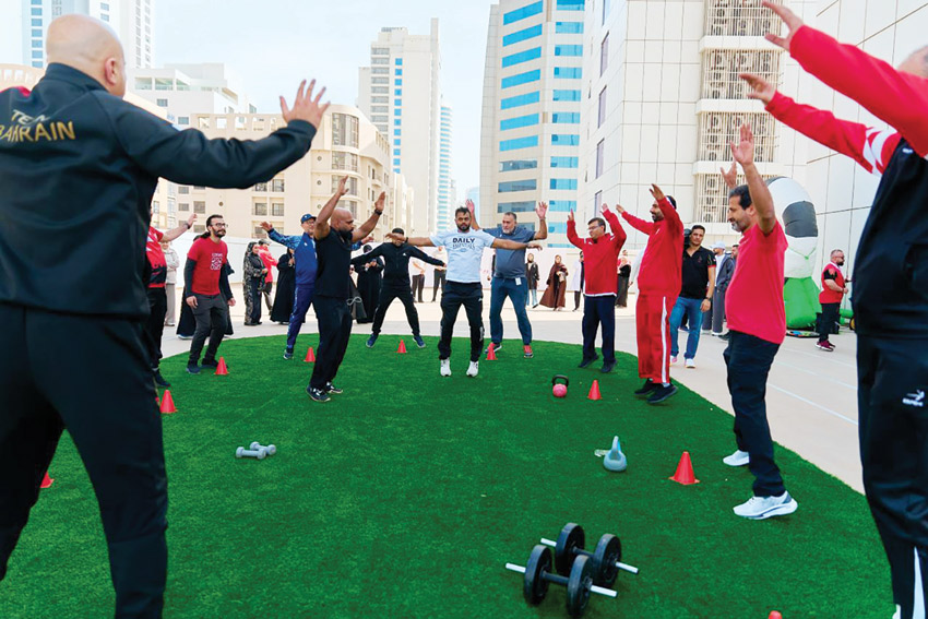 نظمت وزارة الصحة فعاليات رياضية وصحية متنوعة بمناسبة اليوم الرياضي لمملكة البحرين، في مبنى الوزارة، وذلك تنفيذًا لقرار مجلس الوزراء بأن يكون يوم الخميس الموافق 12 فبراير 2026 نصف يوم عمل في جميع الوزارات والهيئات الحكومية؛ لإفساح المجال أمام العاملين فيها للمشاركة في فعاليات اليوم الرياضي لمملكة البحرين، بما يكرّس دور الرياضة كثقافة مجتمعية.