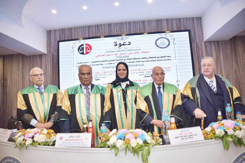 وتناولت الأطروحة دراسة مقارنة لمبدأ الفصل بين السلطات وأثره في ضمان استقلال القضاء، من خلال تحليل النماذج التشريعية في كل من فرنسا ومصر ومملكة البحرين، بما يسهم في تعزيز الفهم القانوني المقارن وتطوير المنظومة العدلية.