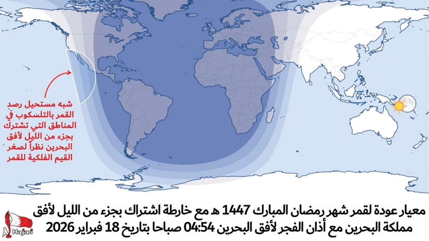 أعلن الباحث الفلكي علي الحجري سلسلة من الظواهر الفلكية المميزة التي ستشهدها سماء البحرين والمنطقة خلال شهر فبراير الجاري، بالتزامن مع حلول شهر رمضان المبارك وهلاله. وقال الحجري إن هلال شهر شعبان المتناقص لهذا العام سيختفي عن العين المجردة ويدخل في طور المحاق عند شروق الشمس يوم الأحد 15 فبراير الجاري في الساعة (06:13) صباحا ليختفي عن الأنظار مدة 3 أيام و11 ساعة و20 دقيقة، ليظهر بشكل علني لهلال شهر رمضان المبارك في مساء يوم الأربعاء 18 فبراير الجاري مع مغيب الشمس في الساعة (05:33) مساء، بينما يصعب رصده إلا بتلسكوبات في صباح غد الإثنين 16 فبراير الجاري بسبب ارتفاعه المنخفض وبنفس توقيت شروق الشمس.