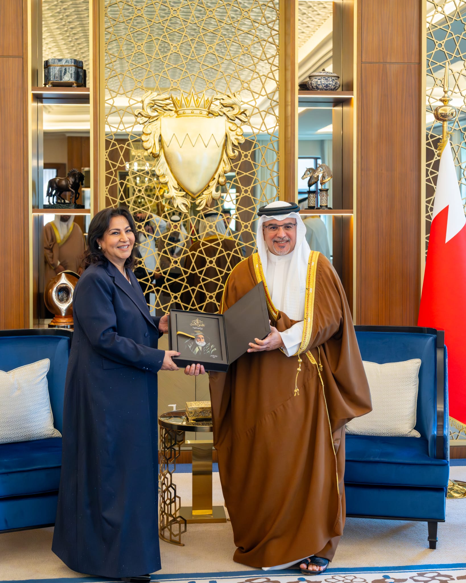 استقبل صاحب صاحب السمو الملكي الأمير سلمان بن حمد آل خليفة ولي العهد رئيس مجلس الوزراء، اليوم في قصر القضيبية، بحضور سمو الشيخ عيسى بن سلمان بن حمد آل خليفة وزير ديوان رئيس مجلس الوزراء، ومعالي الشيخ سلمان بن خليفة آل خليفة وزير المالية والاقتصاد الوطني، وعدد من أصحاب السعادة من كبار المسؤولين، الكاتبة الصحفية سوسن الشاعر، حيث تشرفت بإهداء سموه نسخة من كتاب "عيسى الكبير.. باني الدولة الحديثة"، والذي جاء إصداره تزامنًا مع الأمر الملكي السامي الذي تفضل به حضرة صاحب الجلالة الملك حمد بن عيسى آل خليفة ملك البلاد المعظم، بأن يحمل هذا العام اسم "عام عيسى الكبير" احتفاءً بباني الدولة الحديثة وقائد النهضة في تاريخ مملكة البحرين، صاحب العظمة عيسى الكبير حاكم البحرين وتوابعها طيب الله ثراه، وكذلك احتفال المملكة بالذكرى الخامسة والعشرين لميثاق العمل الوطني.
