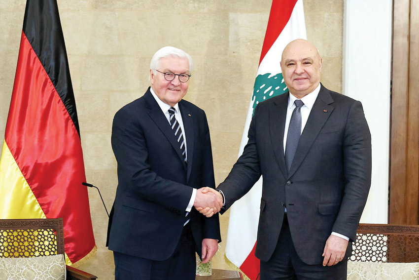 بيروت - (أ ف ب): دعا الرئيس الألماني فرانك-فالتر شتاينماير من بيروت السلطات اللبنانية الى مواصلة نزع سلاح حزب الله، معتبرا أن من شأن ذلك تهيئة الظروف لانسحاب اسرائيل من مناطق تقدمت اليها خلال الحرب. وخاض حزب الله حربا مع اسرائيل استمرت أكثر من عام، وانتهت في نوفمبر 2024 بوقف لإطلاق النار، لم يحل دون مواصلة الدولة العبرية شنّ ضربات دامية تزامنا مع إبقاء قواتها في خمس تلال استراتيجية في جنوب لبنان، رغم ان الاتفاق نصّ على انسحابها بالكامل.