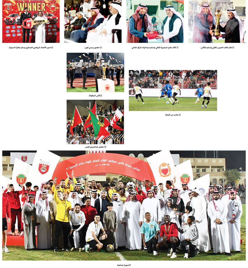 أقيمت تحت رعاية المشير الركن الشيخ خليفة بن أحمد آل خليفة القائد العام لقوة دفاع البحرين، المباراة النهائية للنسخة الخامسة من بطولة كأس القائد العام لقوة دفاع البحرين لكرة القدم، والتي أقيمت مساء أمس الإثنين على ملعب استاد الشيخ علي بن محمد آل خليفة، بحضور الشيخ علي بن خليفة بن أحمد آل خليفة رئيس مجلس إدارة الاتحاد البحريني لكرة القدم، وعدد من كبار ضباط قوة دفاع البحرين.