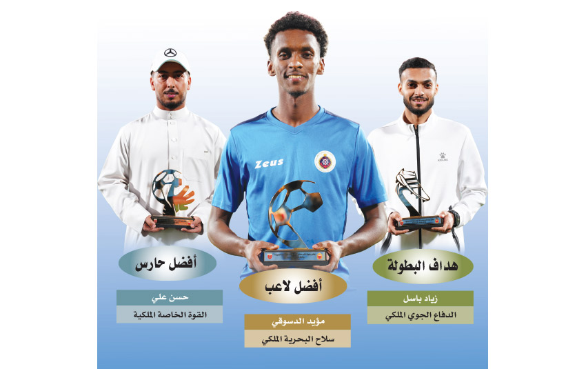 حصل على جائزة أفضل لاعب في البطولة مؤيد الدسوقي من فريق سلاح البحرية الملكي، وجائزة هداف البطولة كانت من نصيب اللاعب زياد باسل من فريق الدفاع الجوي الملكي، وجائزة أفضل حارس في البطولة ذهبت إلى حسن علي من فريق القوة الخاصة الملكية.