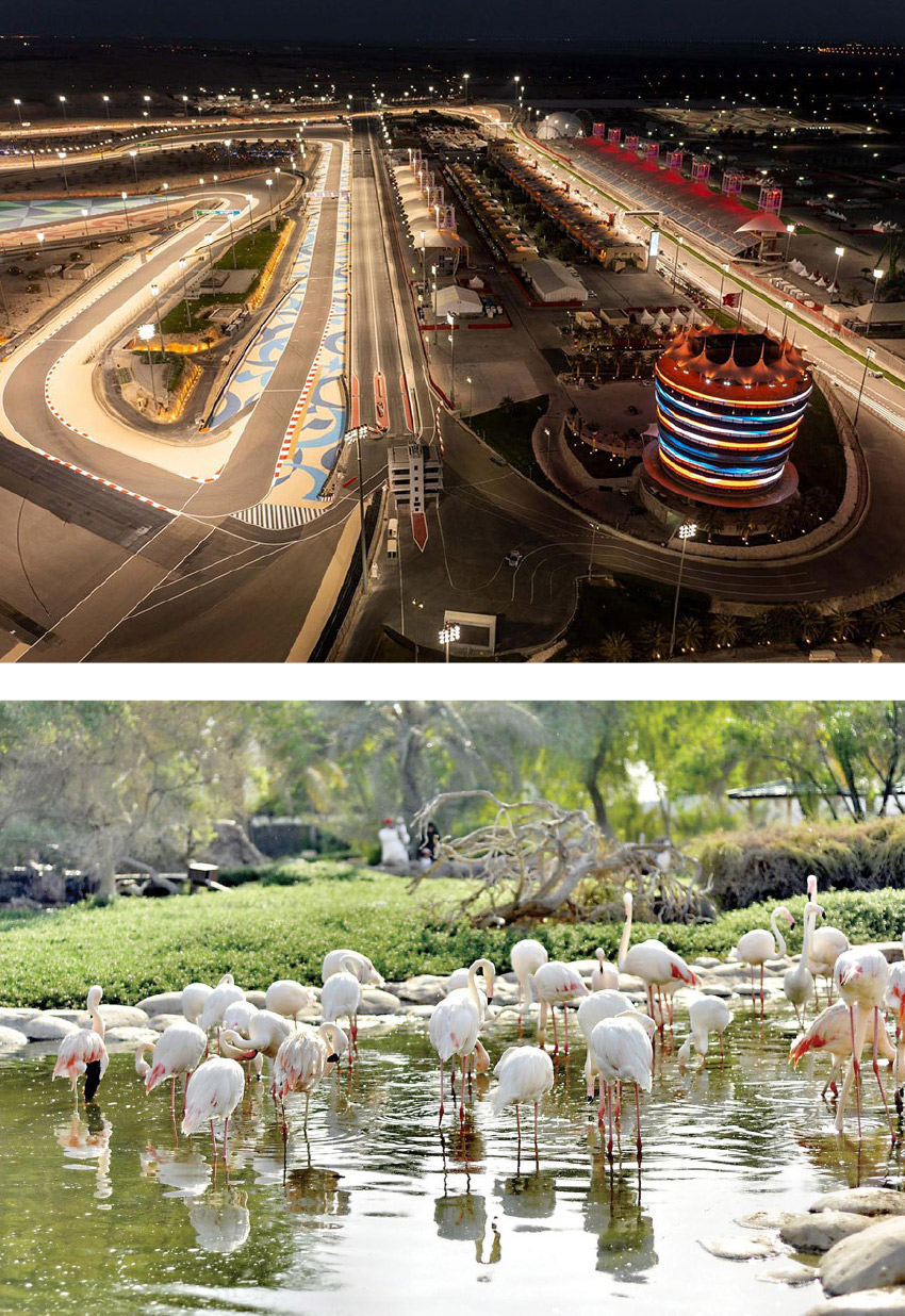 لا يمكن الحديث عن الصخير دون ذكر حلبة البحرين الدولية، التي تقع في قلب المنطقة وتستضيف سباقات عالمية أبرزها سباق الفورمولا 1. وجود هذه الحلبة منح الصحراء شهرة دولية، وحوّلها من مجرد منطقة صحراوية هادئة إلى مركز يجمع بين الرياضة العالمية والسياحة المحلية. وخلال موسم السباقات، تتحول المنطقة إلى خلية نشاط، حيث تتوافد الجماهير من مختلف دول العالم، في مشهد يعكس قدرة البحرين على دمج الحداثة مع الطبيعة الصحراوية المحيطة.