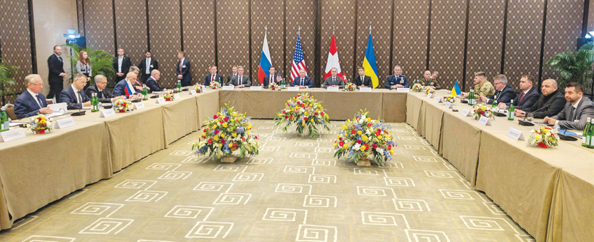 وتستند المفاوضات الى خطة أمريكية أُعلنت قبل أشهر، وما زالت قضية تقديم كييف تنازلات تتعلق بمساحات من الأراضي مقابل ضمانات أمنية محور النقاشات.