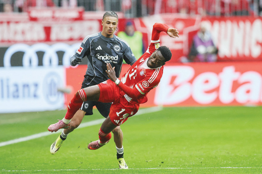 وقال النادي في بيان «تعرض ألفونسو ديفيز لتمزق في ألياف عضلات الفخذ الخلفية في الساق اليمنى خلال فوزنا على أينتراخت فرانكفورت 3-2. وأكد الجهاز الطبي لنادي بايرن ميونيخ الإصابة».