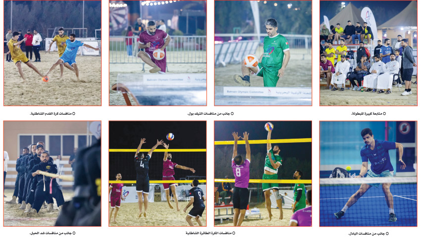 وفي منافسات كرة القدم الشاطئية، حقق فريق الاتفاق فوزًا مريحًا على داركليب بسبعة أهداف مقابل هدفين، وفاز المالكية على بلاك كاسل بأربعة أهداف مقابل هدفين، فيما فاز مركز شباب صدد (ب) على مركز شباب صدد (أ) بنتيجة 11/2، وفاز فريق رويال غارد على بنك البحرين والكويت بهدفين مقابل هدف، وتفوق الاتحاد الرياضي العسكري على حمادي بأربعة أهداف مقابل ثلاثة، وفاز العكر على مركز شباب المحرق بثمانية أهداف مقابل هدف، فيما فاز الحرس الملكي على الرعود 5/صفر.