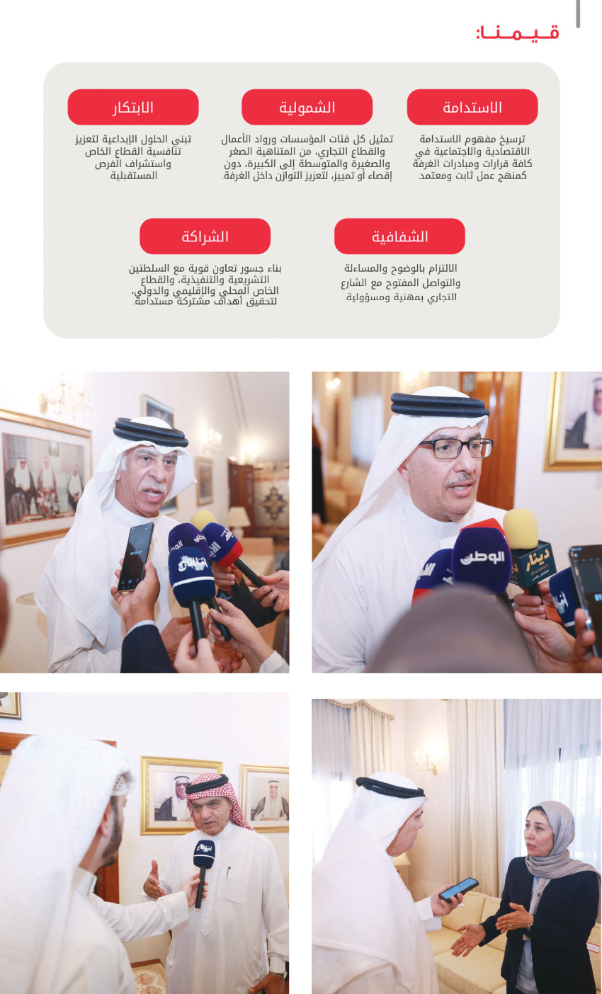 إن المرحلة القادمة تتطلب عملا جماعيًا ورؤية واضحة وتواصلاً مستمرًا مع القاعدة التجارية بما يسهم في تطوير الأداء ومعالجة التحديات وترسيخ صورة إيجابية متجددة عن الغرفة تتماشى مع أفضل الممارسات في الغرف التجارية إقليميا ودوليا.