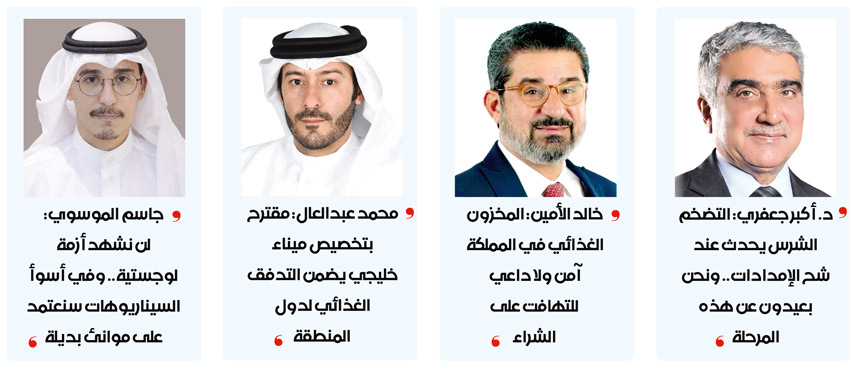 أضف إلى ذلك أن النظام اللوجستي في الخليج يخضع لنظام المقاصة وعدم ازدواجية الضريبة. ما يعني ان البضائع التي تأتي إلينا من الامارات او عمان او السعودية لن يستحصل عليها الضريبة الجمركية الإضافية. وبالتالي لدينا بنية تحتية لشبكة نقل خليجية نشطة ومتماسكة، ولدينا قوانين ونظام ضريبي منسق، ولدينا موانئ بديلة. كل ذلك يجعلنا بمأمن من أي أزمة لوجستية او أزمة نقص غذائي. علما بأن الوضع حتى الان طبيعي، وجميع العمليات في ميناء خليفة بن سلمان مستمرة حاليا بما في ذلك تسليم البضائع. ما يجعل الوضع حاليا أفضل بكثير من فترة الجائحة التي لم نشهد فيها مشكلة تتعلق بنقص المخزون الغذائي. ففي تلك الفترة توقفت حركة الطيران حول العالم، وكذلك النقل البري، مع صعوبات في الملاحة البحرية. ولكننا الآن بعيدون عن هذا السيناريو. وحتى توقف حركة الطيران يقتصر على بعض الدول في المنطقة، ما يعني وجود بدائل عديدة.
