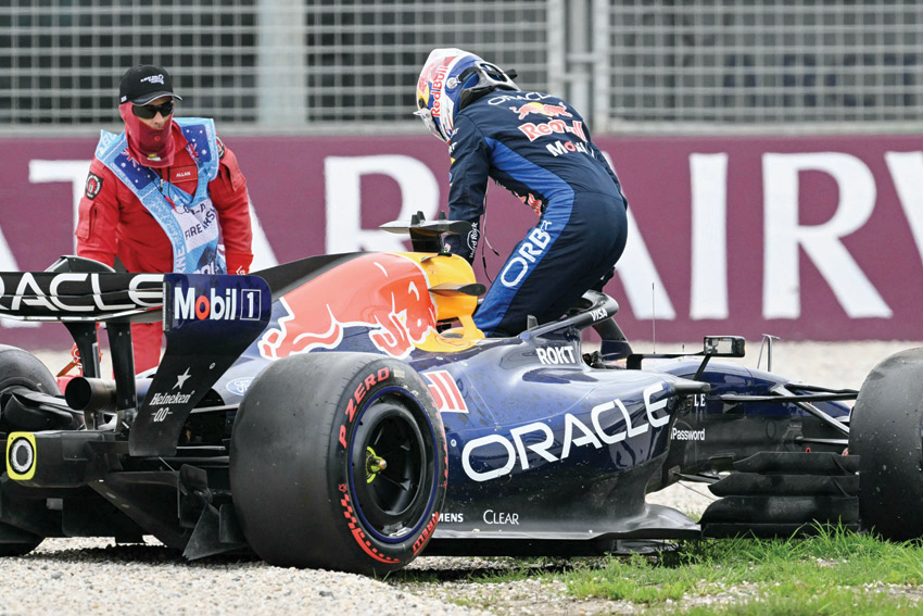 وخرج فيرستابن من سيارته ريد بول وهو يهز يده ومعصمه، لكنه أكد بعد فحص طبي أنه بخير.