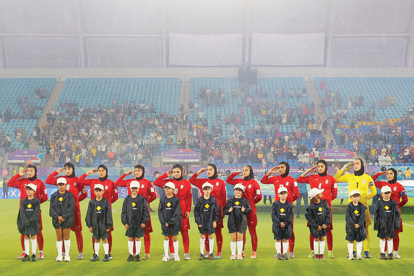 غولد كوست - (أ ف ب): أدت لاعبات منتخب إيران النشيد الوطني قبل توديع كأس آسيا للسيدات في كرة القدم بخسارتهن في مباراتهن الأخيرة ضمن دور المجموعات الأحد في أستراليا. ففي مواجهة كوريا الجنوبية في مستهل مشوارهن الاثنين، وقفت اللاعبات من دون حراك، بعد يومين من اندلاع الحرب التي شنتها الولايات المتحدة وإسرائيل ضد طهران.