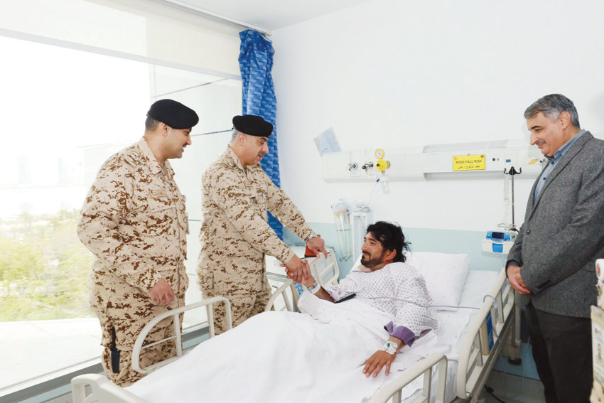 وخلال الزيارة أكد قائد الخدمات الطبية الملكية أن كل الإمكانيات والكوادر الطبية والتمريضية مسخرة بالكامل لتقديم الرعاية اللازمة للمصابين، حيث صرح العميد طبيب الشيخ فهد بن خليفة آل خليفة قائلاً: «إن الحالة الصحية للمصابين مستقرة، وتلقى متابعة دقيقة على مدار الساعة، والمنظومة الطبية تعمل بكامل جاهزيتها لضمان تعافيهم التام وعودتهم لممارسة حياتهم الطبيعية في أقرب وقت».