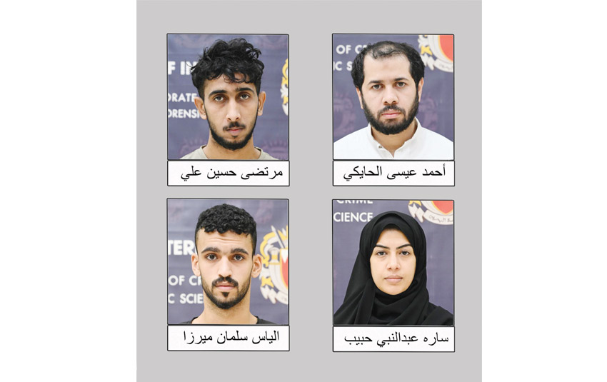 أعلنت وزارة الداخلية أن الإدارة العامة للمباحث والأدلة الجنائية تمكنت من القبض على 4 أشخاص بحرينيين وتحديد خامس «هارب بالخارج» إثر قيامهم بالتخابر مع الحرس الثوري الإيراني، من خلال عناصر إرهابية موجودة في إيران، والمقبوض عليهم هم: