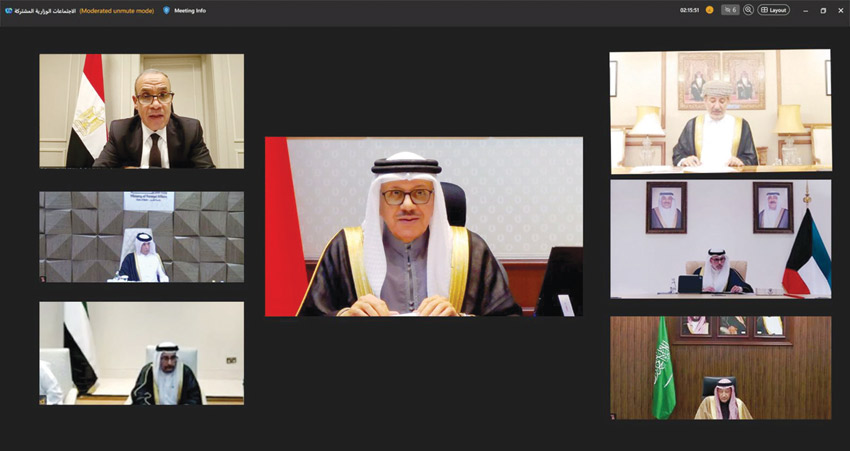 ترأس الدكتور عبداللطيف بن راشد الزياني وزير الخارجية رئيس الدورة الحالية للمجلس الوزاري الاجتماع الوزاري المشترك بين وزراء الخارجية في دول مجلس التعاون لدول الخليج العربية وجمهورية مصر العربية الذي عقد عبر الاتصال المرئي.