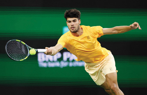 إنديان ويلز - (أ ف ب): تابع الإسباني كارلوس ألكاراس المصنف أول عالميا احتفاظه بسجله الخالي من الهزائم هذا الموسم عندما ثأر من البريطاني كاميرون نوري بالفوز عليه 6-3 و6-4 وبلغ نصف نهائي دورة إنديان ويلز الأمريكية لماسترز الألف نقطة في كرة المضرب للعام الخامس تواليا، مع مطارده المباشر الإيطالي يانيك سينر والالماني ألكسندر زفيريف.