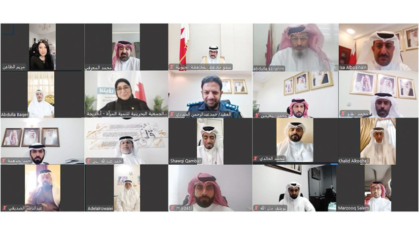 جاء ذلك خلال التقاء سمو محافظ المحافظة الجنوبية عبر تقنية الاتصال المرئي من خلال مجلس المحافظة الافتراضي، بحضور عدد من النواب، وعبدالله ابراهيم عبداللطيف رئيس المجلس البلدي لبلدية المنطقة الجنوبية، والمهندس عيسى عبدالرحمن السيسي البوعينين مدير عام بلدية المنطقة الجنوبية، بالإضافة إلى حضور عدد من الأهالي والضباط والمسؤولين في المحافظة الجنوبية.
