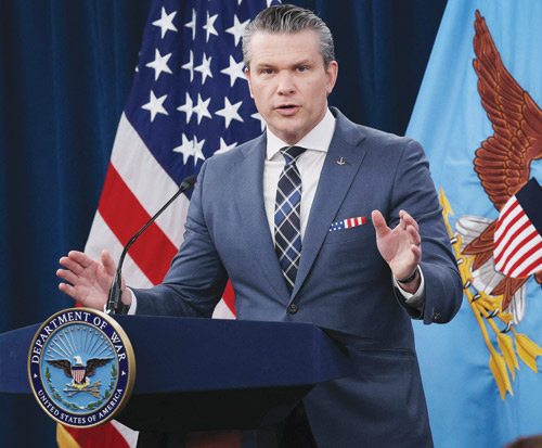 واشنطن – الوكالات: قال وزير الدفاع الأمريكي بيت هيغسيث أمس إنه لا «إطار زمنيا» لإنهاء الحرب الأمريكية الإسرائيلية على إيران المستمرة منذ ثلاثة أسابيع.