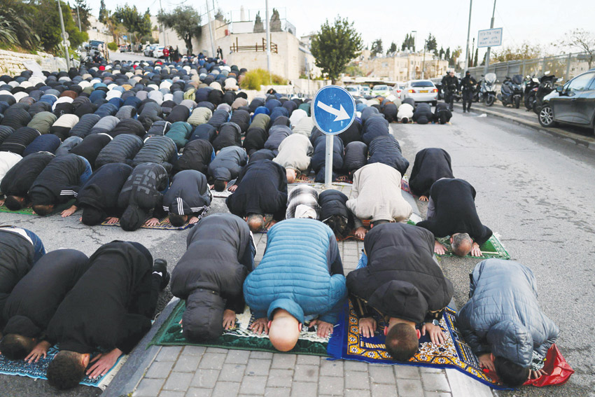 وعاود المصلّون الكرّة. فقبلت الشرطة في نهاية المطاف السماح لهم لبضع دقائق بهذه الصلاة في الشارع، وسط الطريق، وكان يؤمهم إمام وقف على كراسي بلاستيكية صغيرة. وتوجّه الإمام إلى المصلّين قائلا: «اجعلوا من صلاة العيد علامة على عهد جديد مع الله. صلّوا، وادعوا الله القدير، وارجوا أن تُستجاب دعواتكم». وفي خاتمة هذا الكلام الديني، كان الشق السياسي الذي عبّر عنه الإمام بقوله «اللهم انصر المستضعفين». وراح عناصر الشرطة الإسرائيلية عندها يدفعون المصلين الذين تفرقوا من دون مقاومة في الأزقة، واشتروا في طريقهم أرغفة خبز ساخنة معروضة على بسطات الشارع.