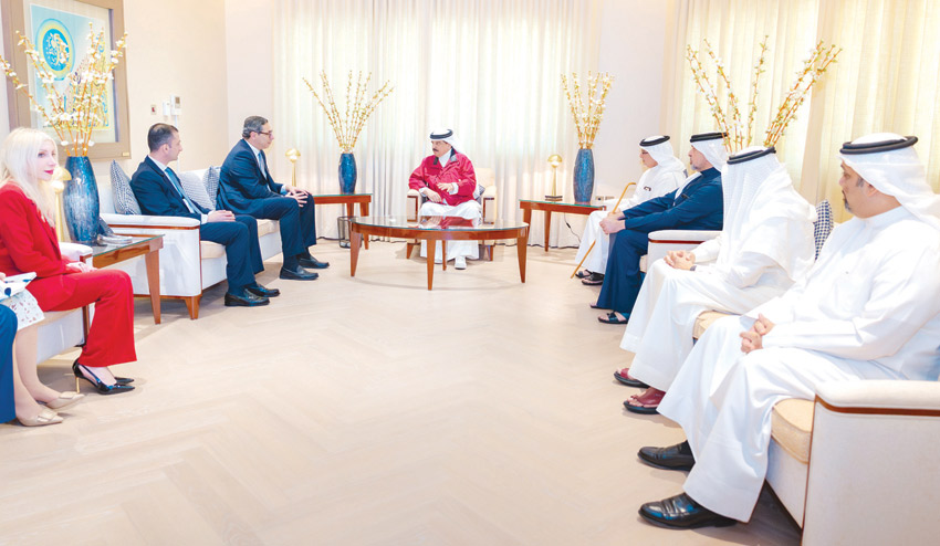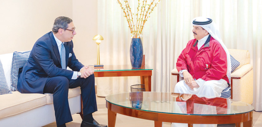 استقبل حضرة صاحب الجلالة الملك حمد بن عيسى آل خليفة ملك البلاد المعظم، بحضور صاحب السمو الملكي الأمير سلمان بن حمد آل خليفة ولي العهد رئيس مجلس الوزراء، أمس، الدكتور كونستانتينوس كومبوس وزير خارجية جمهورية قبرص بمناسبة زيارته للمملكة.