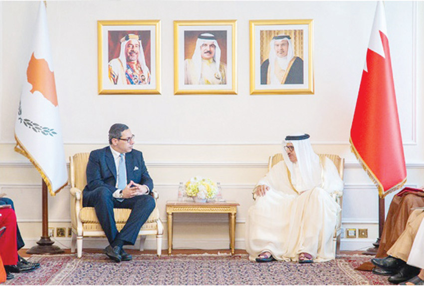 وجرى خلال جلسة المباحثات مناقشة أوجه التعاون المشترك بين البلدين في مختلف المجالات والارتقاء به إلى آفاق أشمل في إطار الاتفاقات المبرمة بين البلدين، والتي تم التوقيع عليها خلال المباحثات الرسمية التي جرت بين حضرة صاحب الجلالة الملك حمد بن عيسى آل خليفة ملك مملكة البحرين المعظم، وفخامة الرئيس نيكوس خريستودوليدس رئيس جمهورية قبرص الصديقة، خلال الزيارة التي قام بها فخامته للمملكة في يناير الماضي لما من شأنه خدمة المصالح المتبادلة.