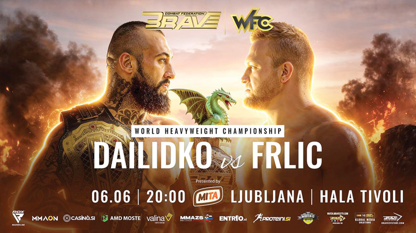 أعلنت منظمة بريف البحرينية الأسرع نمواً والأكثر انتشاراً في رياضات فنون القتال المختلطة على مستوى العالم، إقامة مواجهة عملاقة على لقب العالم للوزن الثقيل في بطولةBRAVE CF ، وذلك بالشراكة مع World Freefight Challenge. حيث سيخوض المقاتل الليتواني بافيل دايليدكو الملقب بـ«ذا إكسبيرمنت» نزالا يدافع من خلاله عن لقبه أمام المقاتل السلوفيني ميها فرليتش، وذلك يوم السبت الموافق 6 يونيو على صالة Hala Tivoli بالعاصمة السلوفينية ليوبليانا.