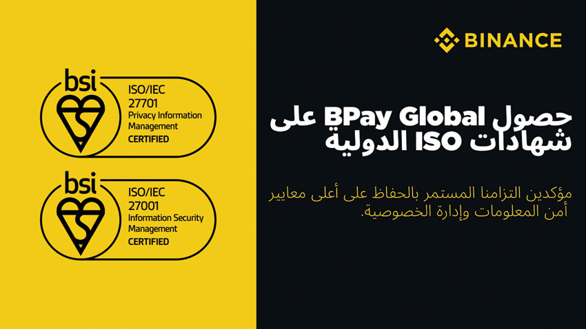 أعلنت BPay Global، شركة خدمات الدفع التابعة لمجموعة بينانس، أكبر منصة لتداول العملات الرقمية في العالم من حيث حجم التداول وعدد المستخدمين، حصولها على شهادتي ISO/IEC 27001 وISO/IEC 27701، في خطوة تعزّز التزامها بتطبيق أعلى معايير أمن المعلومات وحماية البيانات.