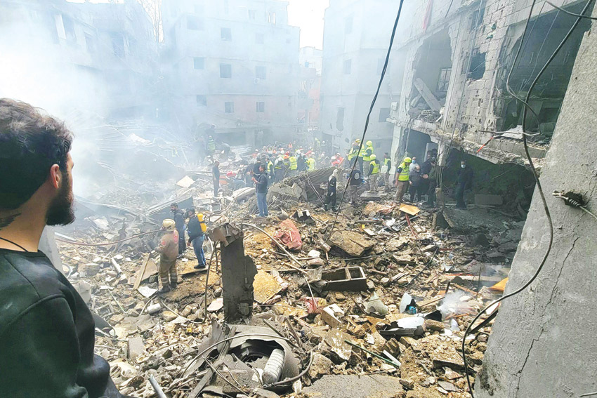 بيروت – (أ ف ب): كثّفت إسرائيل أمس الأحد ضرباتها على جنوب العاصمة اللبنانية وضاحيتها الجنوبية، موقعة أربعة قتلى على الأقل، غداة إنذارها بقصف المعبر الحدودي الرئيسي مع سوريا. وفي جنوب البلاد، أسفرت ضربة اسرائيلية على بلدة كفرحتى عن مقتل سبعة اشخاص، ستة منهم من أفراد عائلة نازحة، في وقت أعلن حزب الله استهدافه بصاروخ كروز بحري بارجة عسكريّة إسرائيليّة، قال إنها كانت تستعد لتنفيذ ضربات.