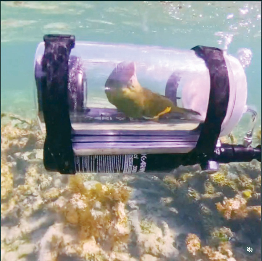 أصبح ببغاء يُدعى «بيبي» نجمًا على الإنترنت بعد أن اصطحبه مالكه الأمريكي ستيفن لويير في رحلة غوص قبالة سواحل جزر البهاما باستخدام غواصة صغيرة صنعها بنفسه. وبحسب موقع ديكسيرتو قام لويير ببناء الهيكل من علبة طعام شفافة، حيث ركّب أنبوبين للهواء مزودين بصمام لمنع ارتداد الهواء، ووصل خزان هواء مضغوط من النوع المستخدم في لعبة كرات الطلاء في الأسفل، وكان هذا المصدر كافيًا ليتمكن الطائر من التنفس بحرية طوال فترة الغطس. ولمنع الجهاز من الطفو أو الغرق تم تثبيت أثقال رصاصية في قاعه، ما أبقى الهيكل على العمق المطلوب، فيما تولى مستشعر أكسجين مزود بجهاز إنذار داخل الجهاز مراقبة سلامة الطائر. وقبل التوجه إلى المحيط المفتوح أجرى المالك تجربة سباحة في حوض الاستحمام، وبعد التأكد من سلامة الهيكل تم الانطلاق إلى جزر البهاما. ولم تكن هذه التجربة أول تحدٍّ خطير يخوضه الببغاء، إذ أتمّ «بيبي» بالفعل 15 قفزة بالمظلة، حيث يصعد بمفرده إلى حاوية بلاستيكية خاصة مثبتة على بطن صاحبه، وعلى ارتفاع يقارب 300 متر، يفتحها مالكه لينطلق الطائر ويرافق المظلة حتى الهبوط. وإلى جانب ذلك، يشارك الببغاء سنويًا مع مالكه في رحلة بالدراجات الهوائية تستمر نحو أسبوع مسافة تصل إلى 800 كيلومتر، وهو حدث يحضره ما يصل إلى 20 ألف شخص.